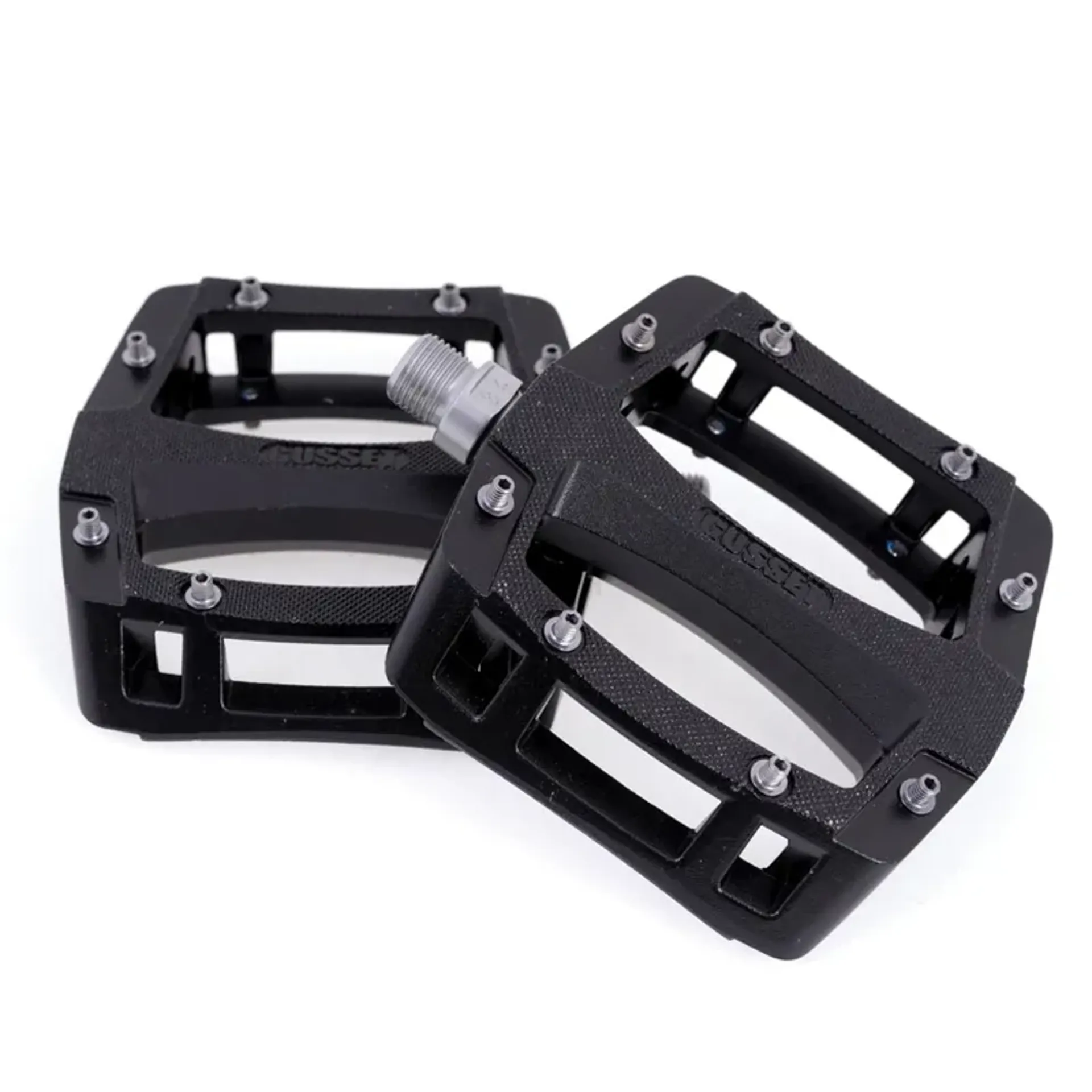 Ultra low profile knurled body with a foot hugging 2 way concave shape and screw-pins.